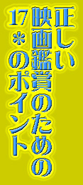 脚本(*13)もポイントで、今は脚本がないような映画も多いが好みではなく、音楽(*14)もすぐ耳に感じるものなので大きな存在だし、美術(*15)も目に直接入るので好みがわかれるところだろう。とくに日本映画で気になるが、映画が良くても、終わると同時に合わない知らない歌曲が鳴り出し、何で!と思う事がかなりある。スポンサーとして使用約束でもあるのだろうか? お聞きしたいこところだ。ラストの歌で台無しになる。